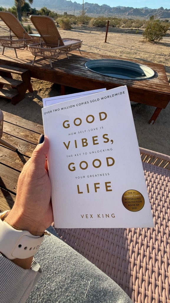 There’s something powerful about reading a wellness book under the desert sun — warm air, quiet energy, and a moment where your mind finally slows down enough to listen. That’s exactly where I started Good Vibes, Good Life by Vex King, a book I’ve seen all over the wellness world but never truly understood until I sat down with it during one of my slow weekends in Joshua Tree.